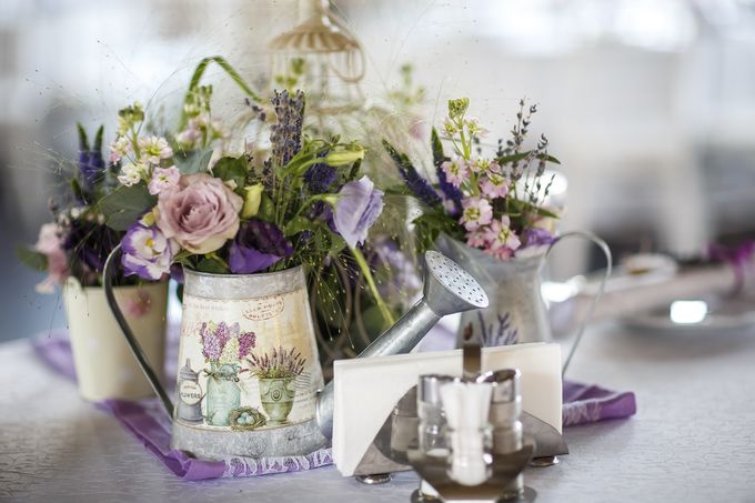 Украшение зала на свадьбу лейки сиреневый — 1 фото