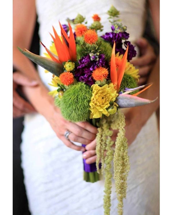 оранжевый свадьбы осенью букет невесты из фиалок — 1 фото