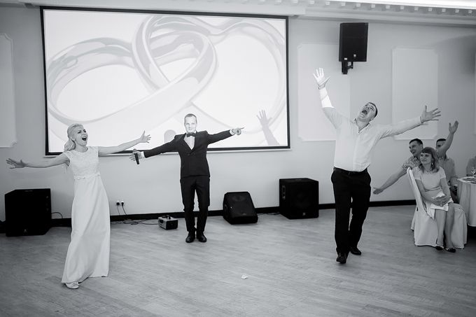 Григорий и Ольга! Спасибо Вам огромное за незабываемую программу нашего свадебного банкета. Мы с женой, а самое главное все гости, остались в восторге! Григорий и Ольга безусловно профессионалы своего дела. Выполнили без исключения весь заранее согласованный сценарий, несмотря на заминку в виде опоздания жениха и невесты из ЗАГСа в банкетный зал. Григория нам посоветовала подруга жены. После первой встречи с Григорием, мы сразу поняли, что хотим видеть в роли ведущего нашего свадебного вечера именно этого замечательного человека. Огромное количество различных идей, обязательно берите ручку и блокнот иначе половину просто не запомните. Индивидуальный и ответственный подход к организации мероприятия. Очень понравилась идея с раздельным интервью жениха и невесты. Видео получилось шикарным. На следующей неделе после свадьбы, гости, присутствовавшие на банкете просили контакты Григория для организации своих праздничных мероприятий. Отдельное спасибо Ольге за шикарное музыкальное сопровождение!