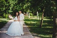 В марте я поехала на Фестиваль Свадебной моды (или как-то так) и познакомилась там с гендиром Подковы Мариной! Она замечательная. Всё рассказала, показала. С первой встречи я поняла, если буду делать выездную, то только через неё! Позже мы уже заключили договор и обговорили детали. Я была, наверное, одной и самых капризных невест. Мне нужна была определенная цветовая гамма, стиль, хотелось всё продумать до мелочей. А если это, а если то..., а если ДОЖДЬ....))